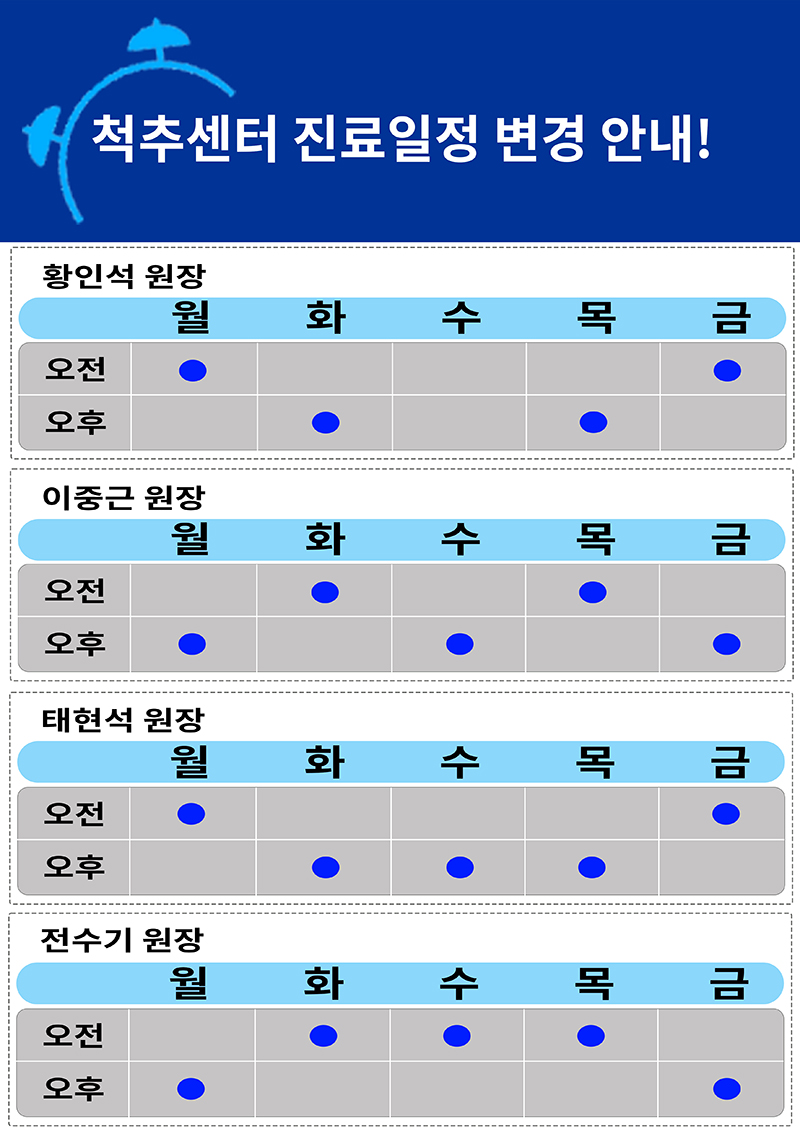 2021³â 09¿ù 01ÀϺÎÅÍ Ã´Ãß¼¾ÅÍ ¿Ü·¡ Áø·á½Ã°£ÀÌ º¯°æµÇ¾ú½À´Ï´Ù.