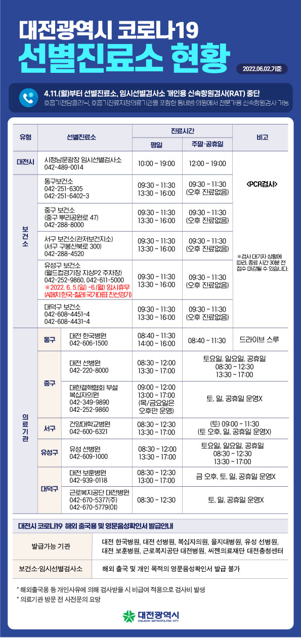 ´ëÀü±¤¿ª½Ã Äڷγª19 ¼±º°Áø·á¼Ò ÇöȲ(2022.06.02±âÁØ)