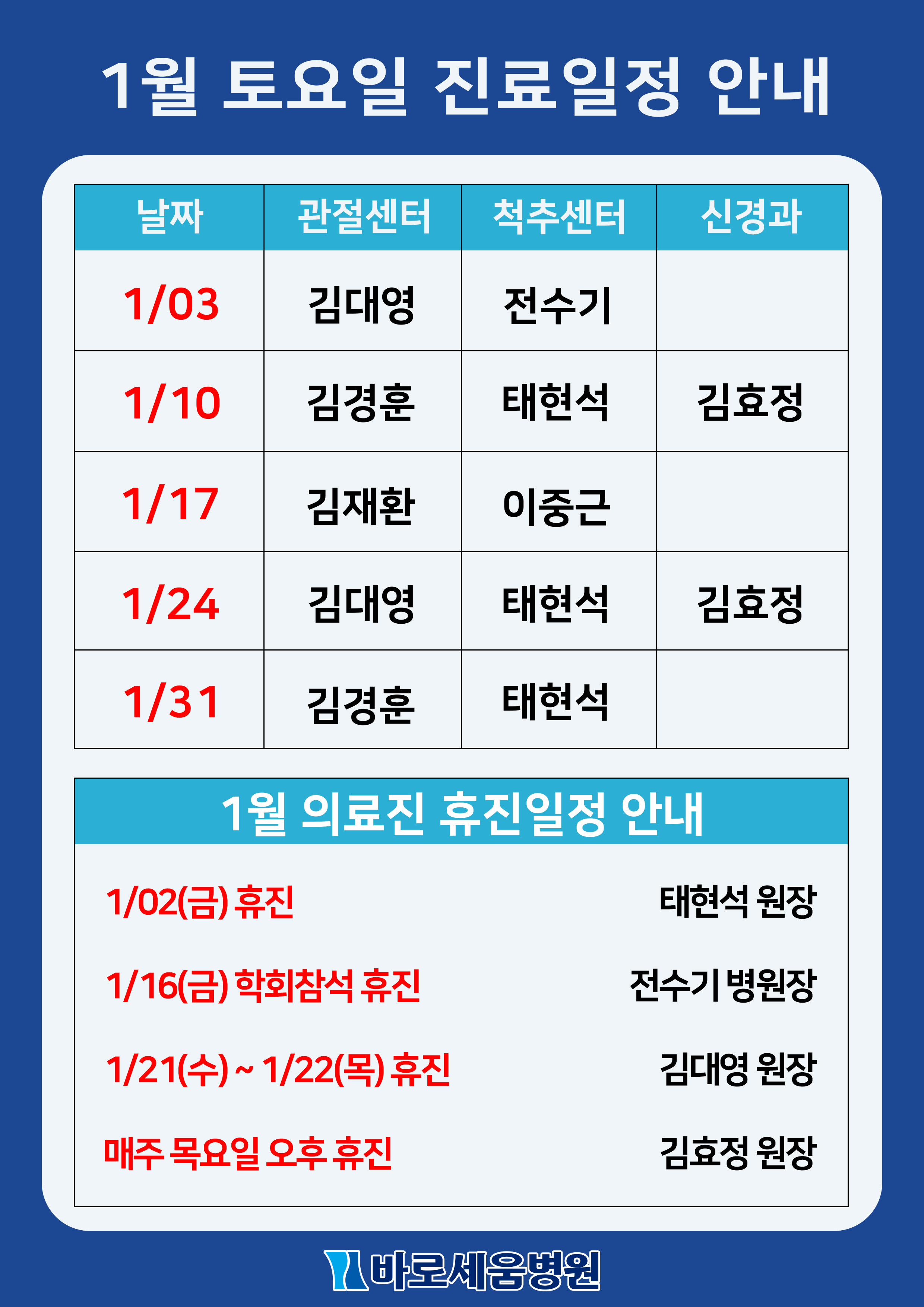 Á¦¸ñ 2026³â 1¿ù Åä¿äÀÏ Áø·á¾È³» ¹× ÈÞÁø¾È³»!!