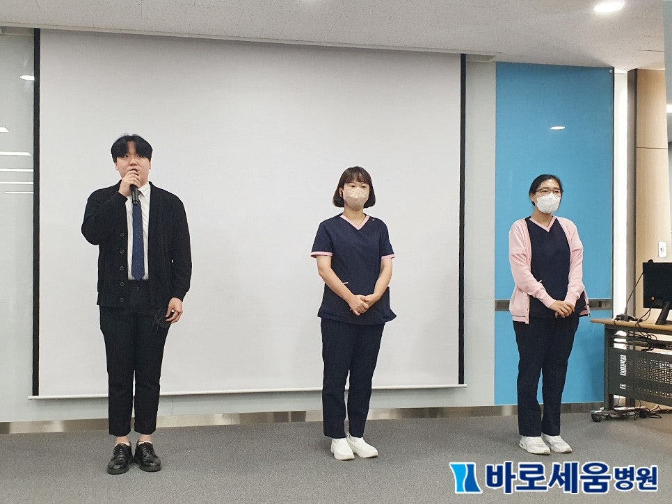¿ø¹«ºÎ Á¢¼ö.¼ö³³ À̼®ÁØ »ç¿ø, °£È£ºÎ ÅëÇÕº´µ¿ Á¶¹Ì¿µ °£È£»ç, °£È£ºÎ ÅëÇÕº´µ¿ ÀÌÁöÇö °£È£»ç°¡ ¹Ù·Î¼¼¿òº´¿ø¿¡ Á÷¿øÀÌ µÈ ¼Ò°¨À» µè°í ¹Ú¼ö·Î ȯ¿µÇÏ¿´½À´Ï´Ù.