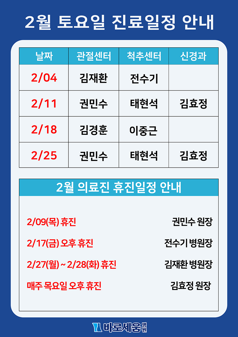 2023³â 2¿ù Åä¿äÀÏ Áø·á¾È³» ¹× ÈÞÁø¾È³»!!