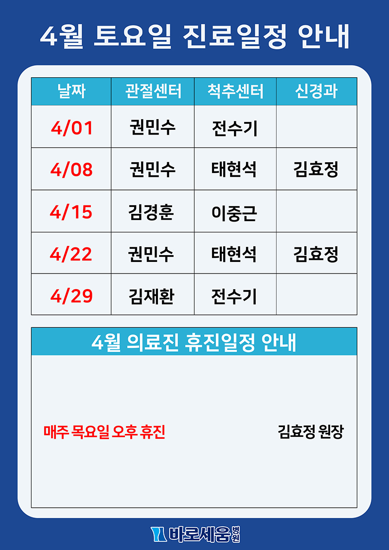 2023³â 4¿ù Åä¿äÀÏ Áø·á¾È³» ¹× ÈÞÁø¾È³»!!