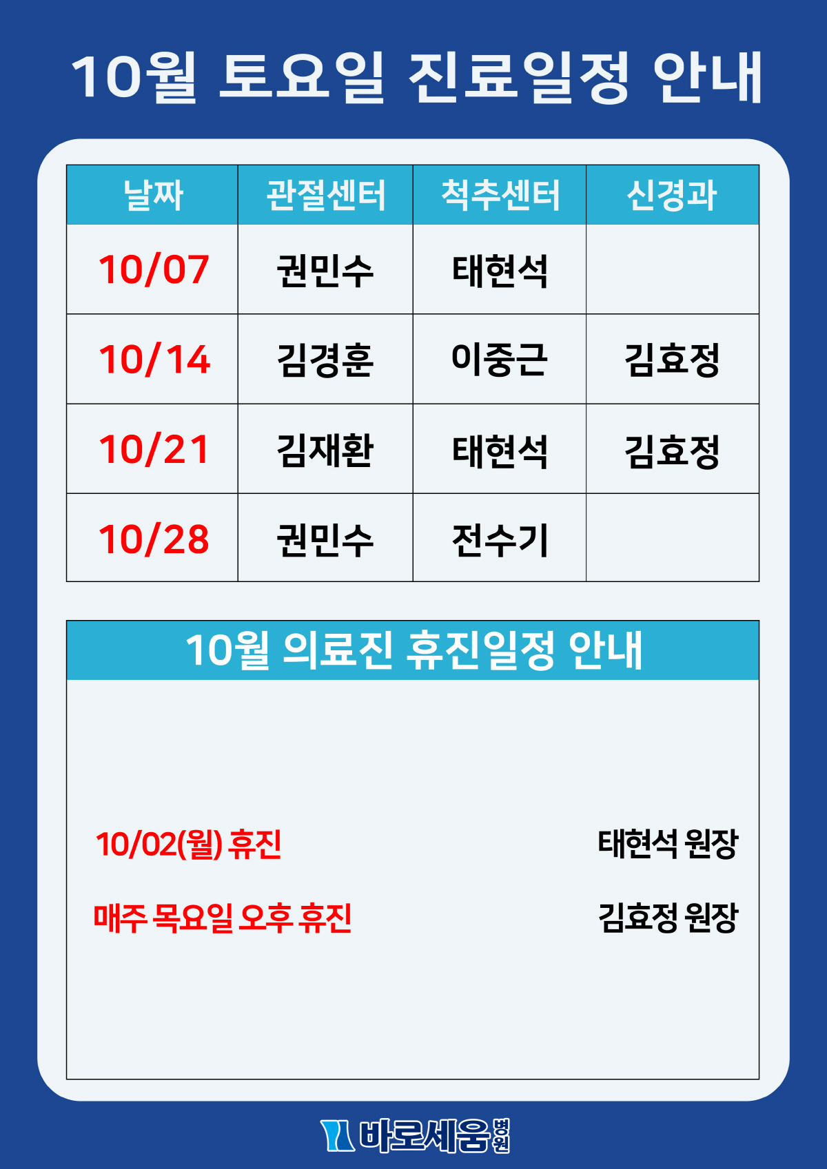 2023³â 10¿ù Åä¿äÀÏ Áø·á¾È³» ¹× ÈÞÁø¾È³»!!