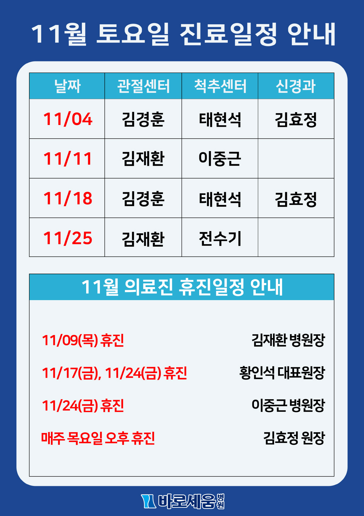 Á¦¸ñ 2023³â 11¿ù Åä¿äÀÏ Áø·á¾È³» ¹× ÈÞÁø¾È³»!!