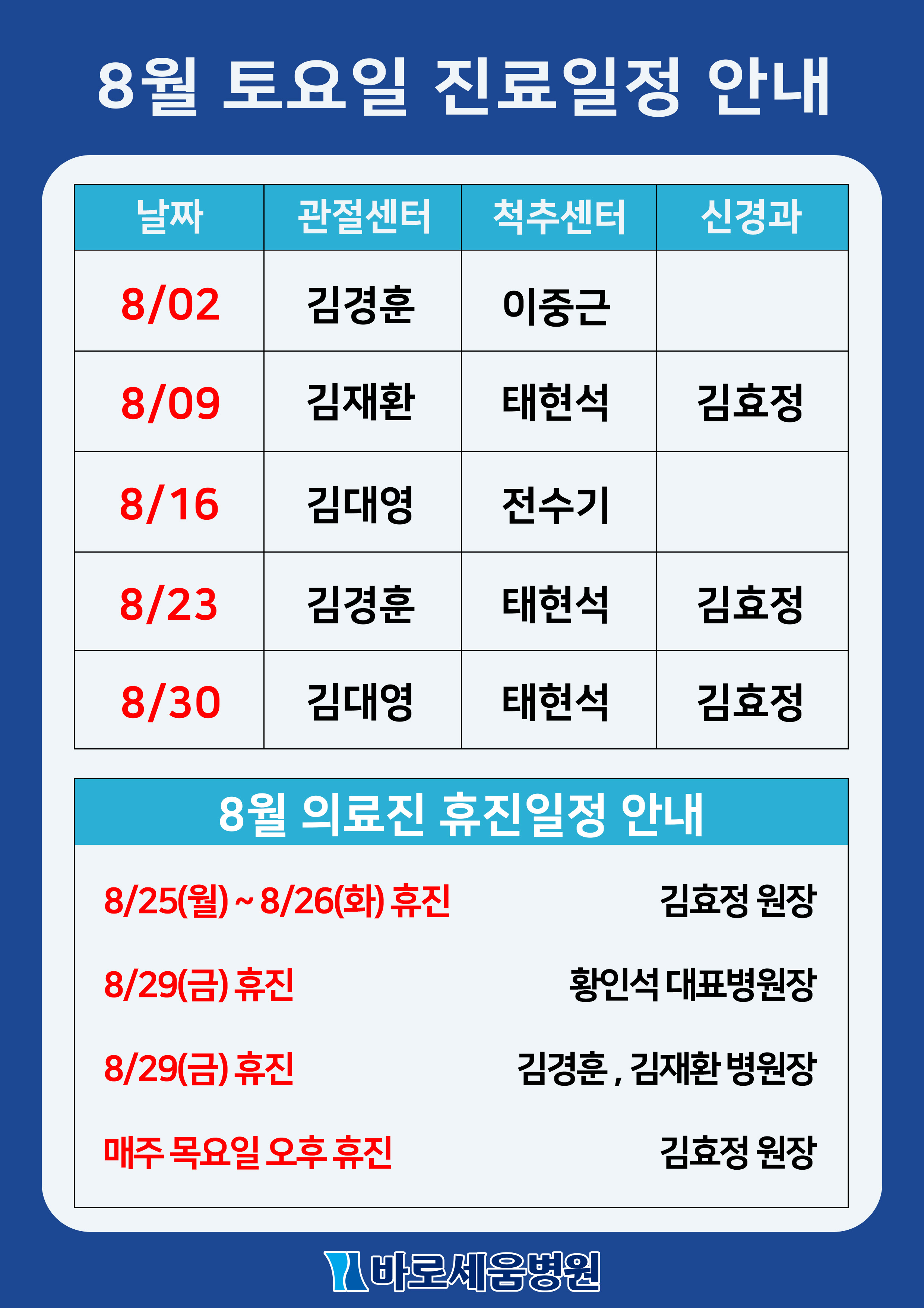 Á¦¸ñ 2025³â 8¿ù Åä¿äÀÏ Áø·á¾È³» ¹× ÈÞÁø¾È³»!!