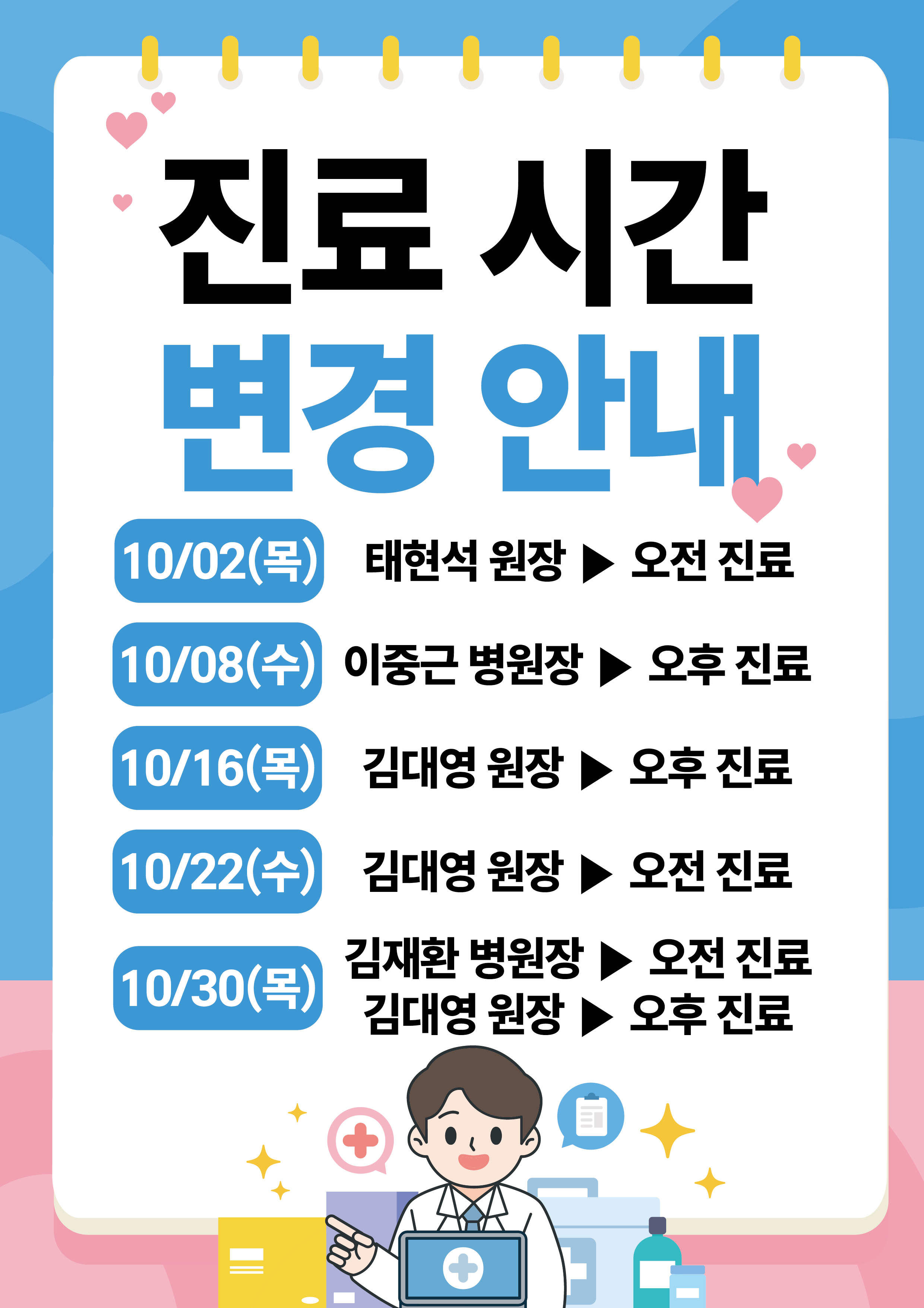 Á¦¸ñ 10¿ù Áø·á ½Ã°£ º¯°æ ¾È³»