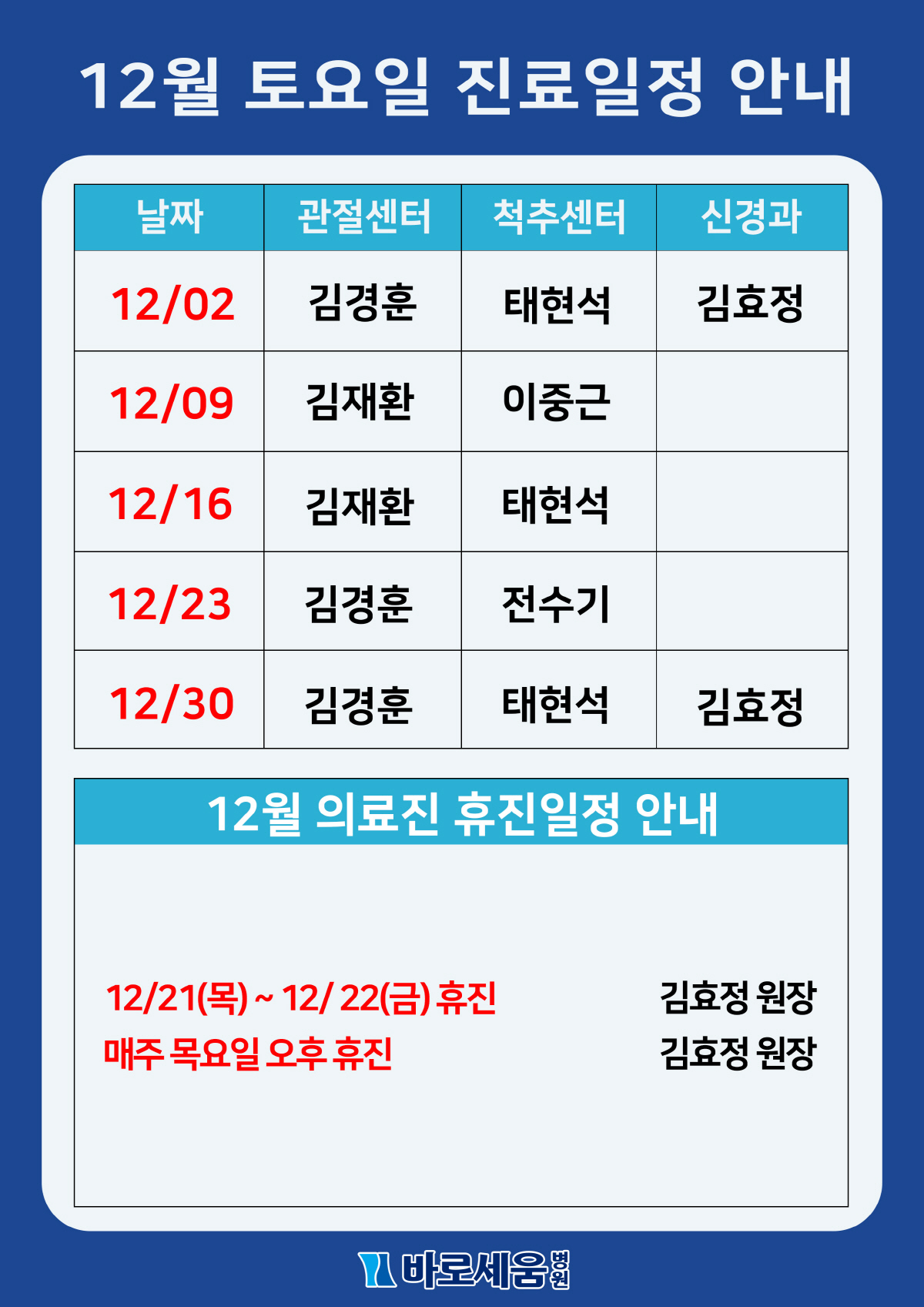 Á¦¸ñ 2023³â 12¿ù Åä¿äÀÏ Áø·á¾È³» ¹× ÈÞÁø¾È³»!!