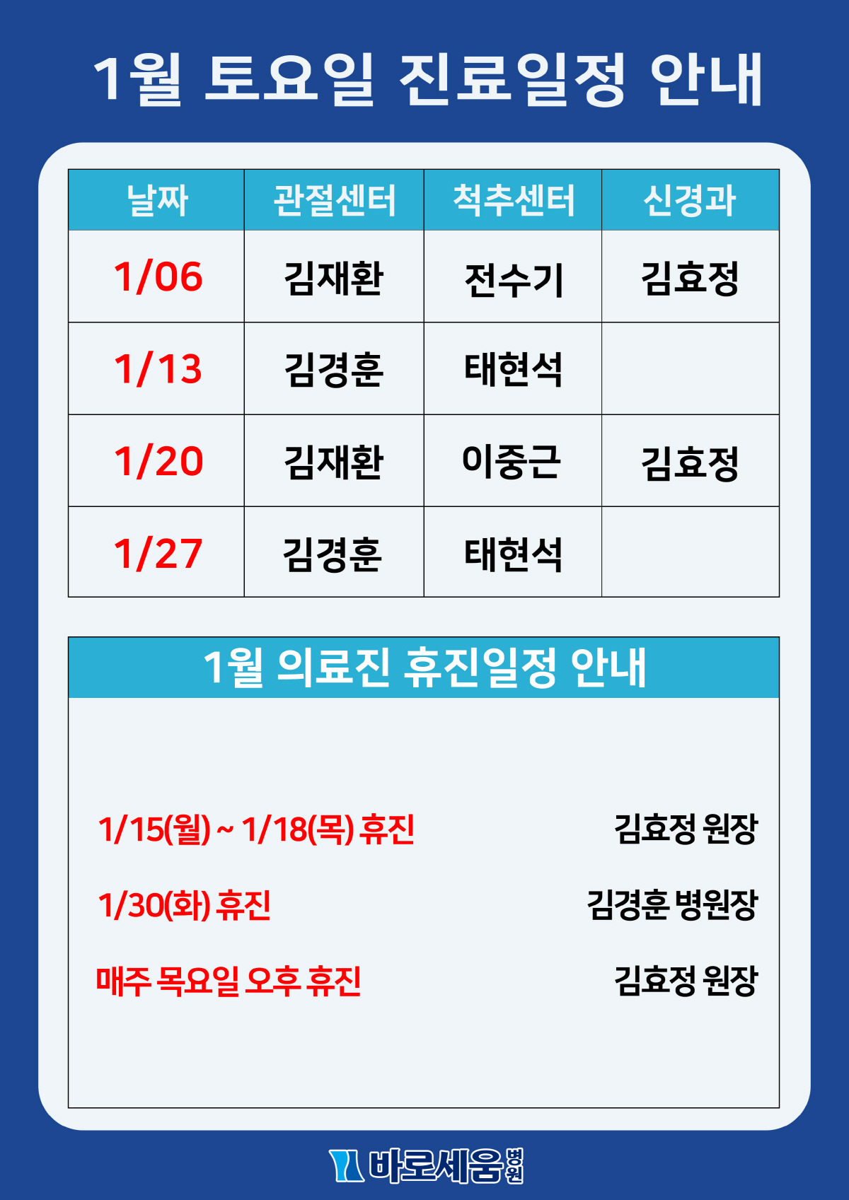 Á¦¸ñ 2024³â 1¿ù Åä¿äÀÏ Áø·á¾È³» ¹× ÈÞÁø¾È³»!!