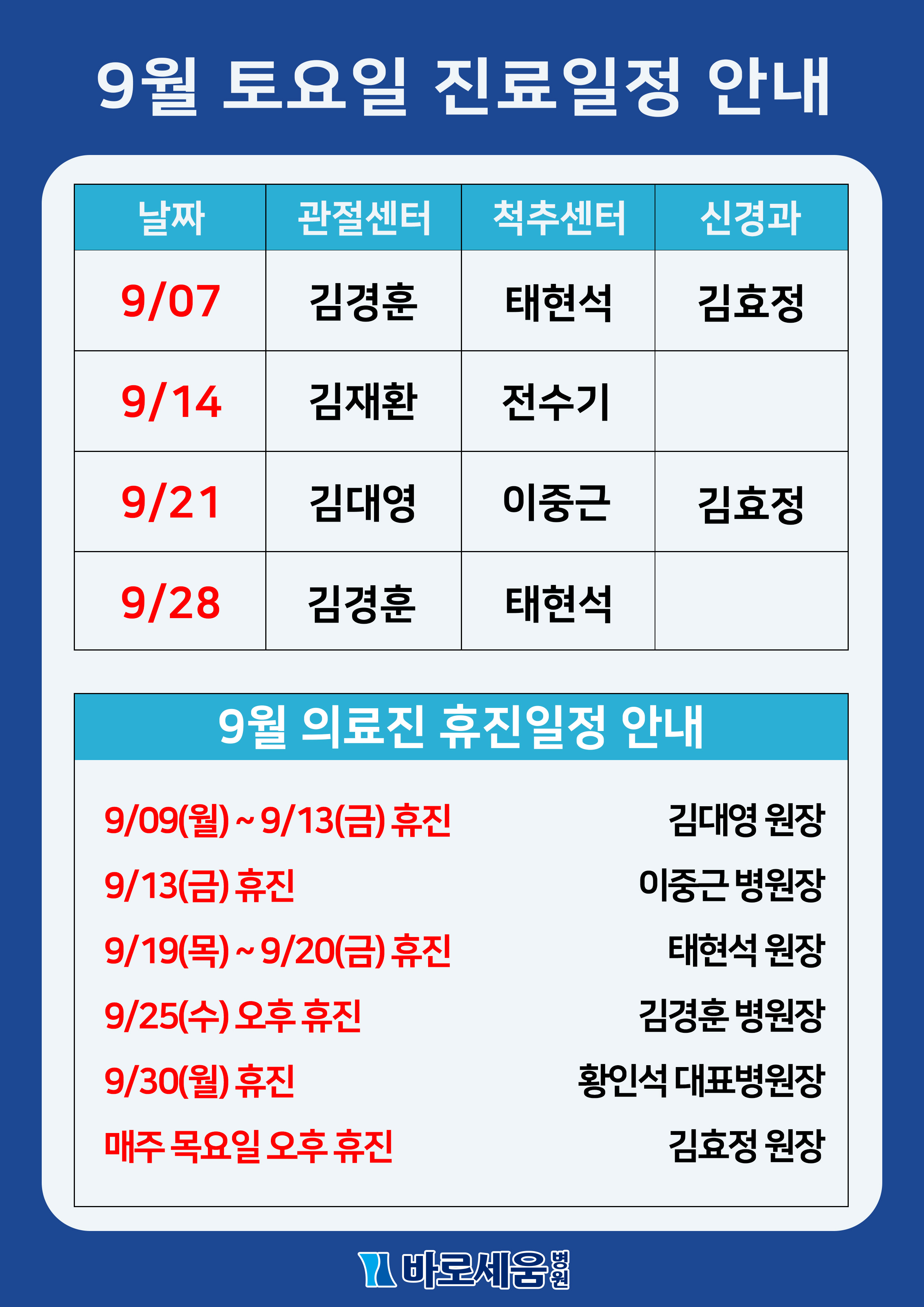 Á¦¸ñ 2024³â 9¿ù Åä¿äÀÏ Áø·á¾È³» ¹× ÈÞÁø¾È³»!!