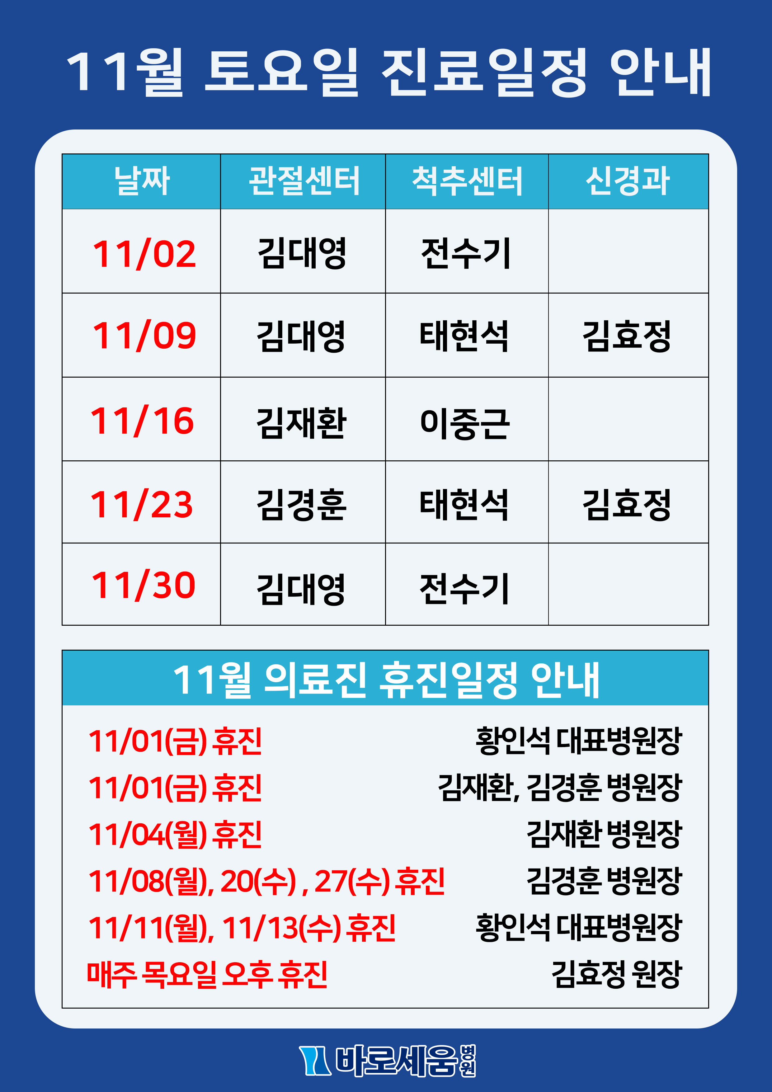 Á¦¸ñ 2024³â 11¿ù Åä¿äÀÏ Áø·á¾È³» ¹× ÈÞÁø¾È³»!!