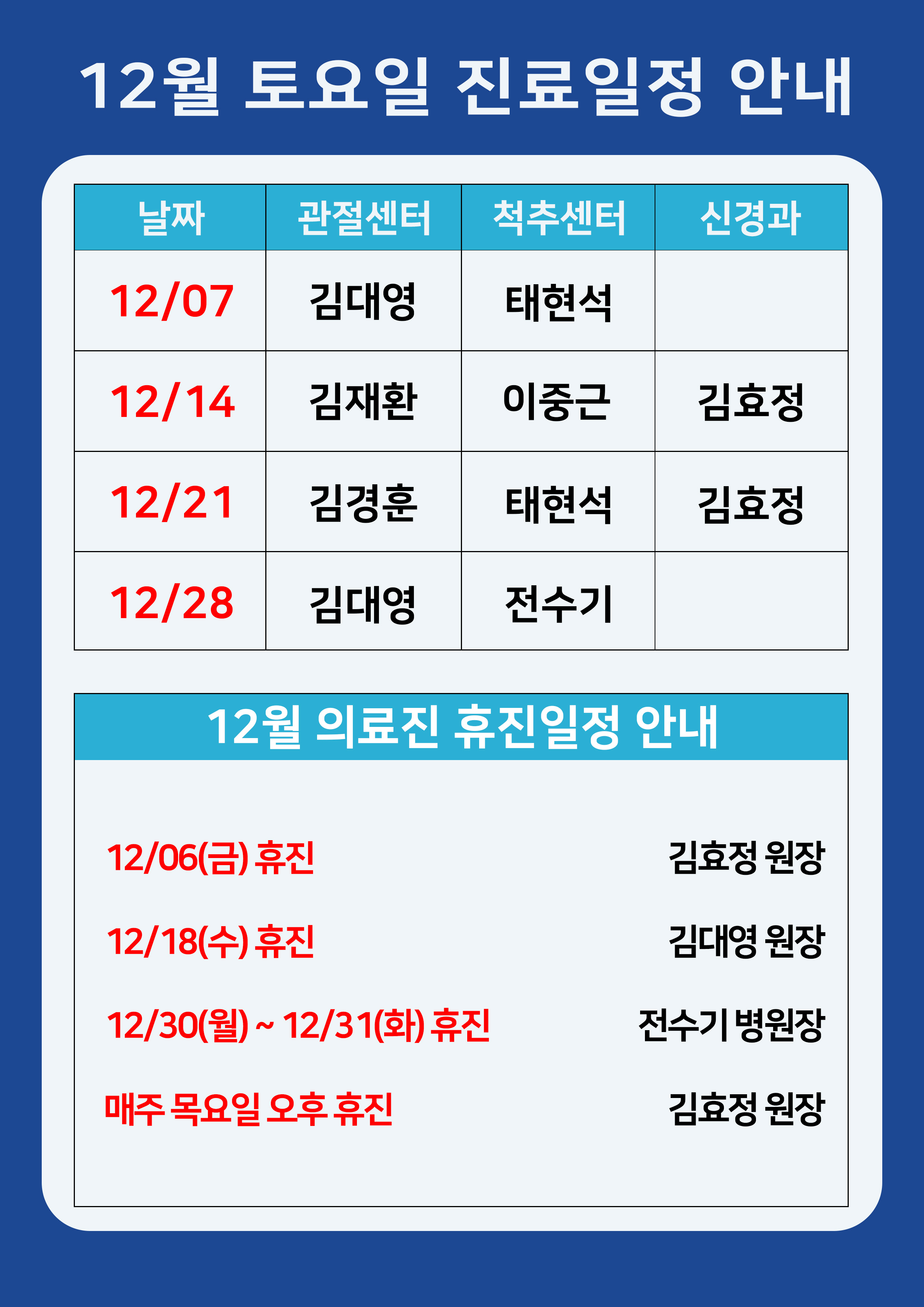 Á¦¸ñ 2024³â 12¿ù Åä¿äÀÏ Áø·á¾È³» ¹× ÈÞÁø¾È³»!!