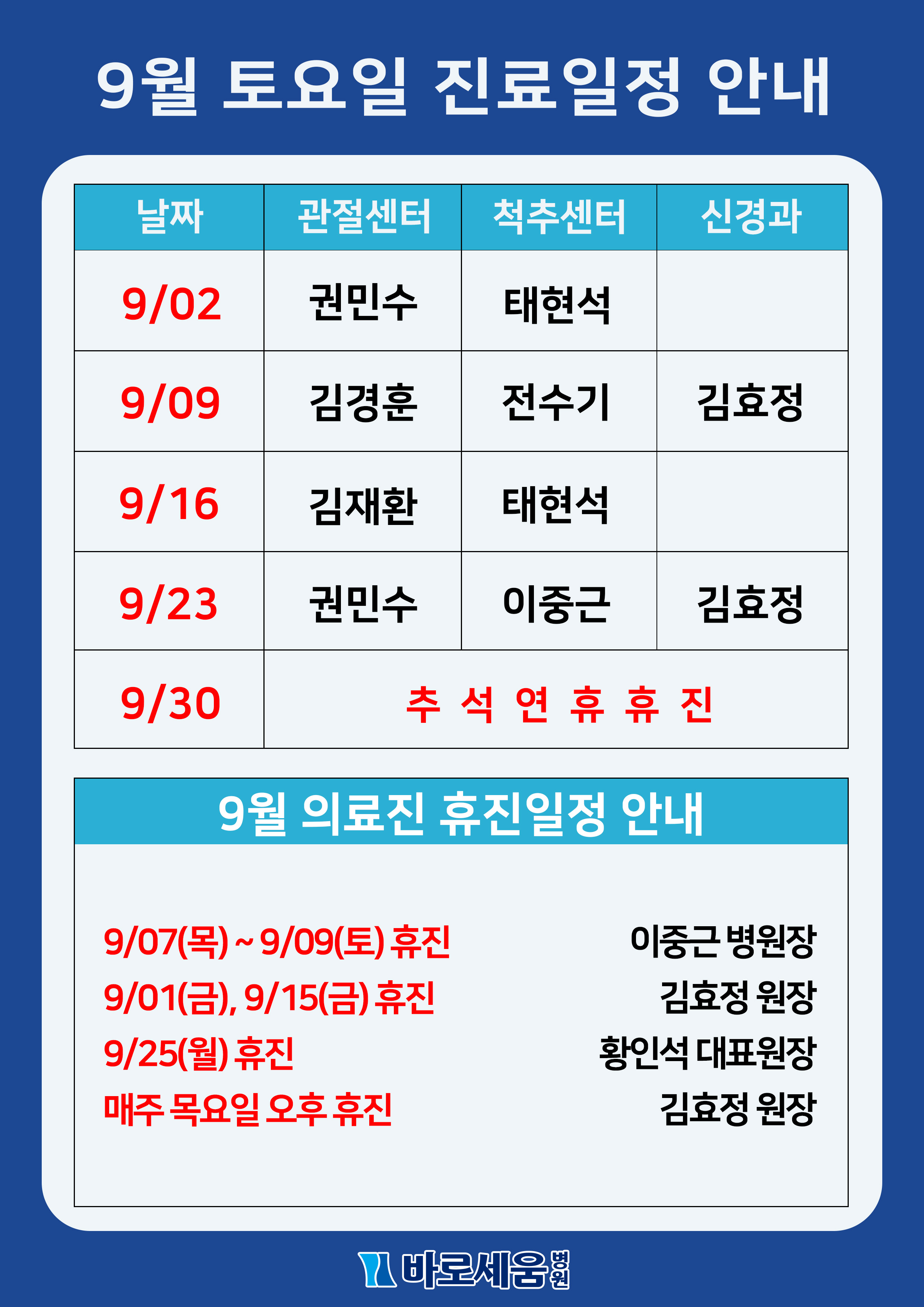 2023³â 9¿ù Åä¿äÀÏ Áø·á¾È³» ¹× ÈÞÁø¾È³»