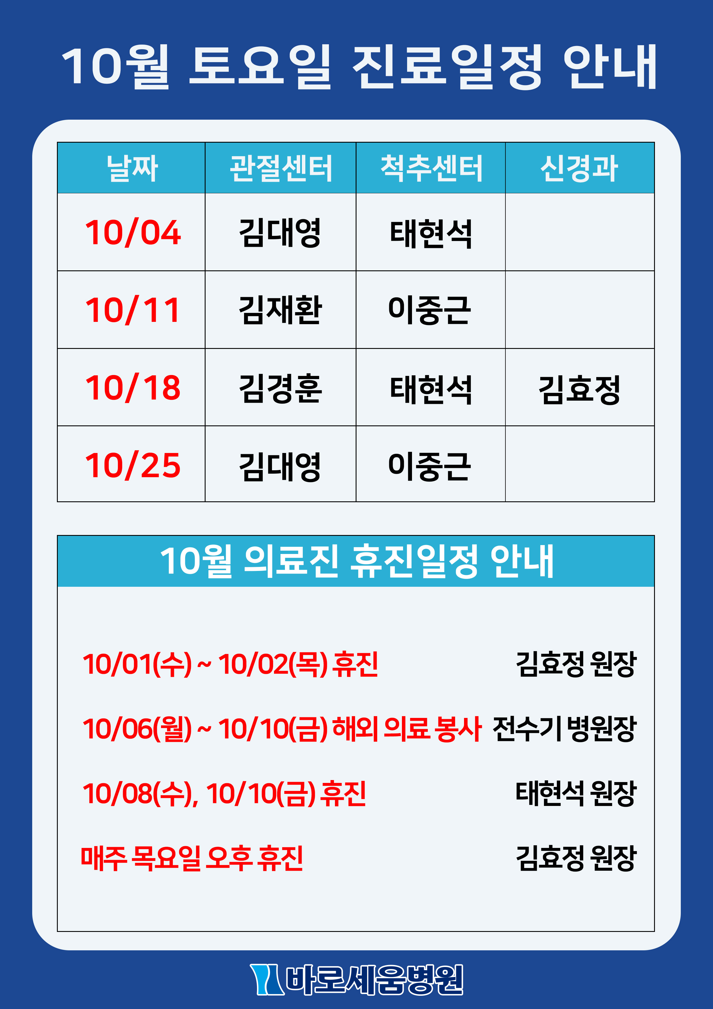 Á¦¸ñ 2025³â 10¿ù Åä¿äÀÏ Áø·á¾È³» ¹× ÈÞÁø¾È³»!!